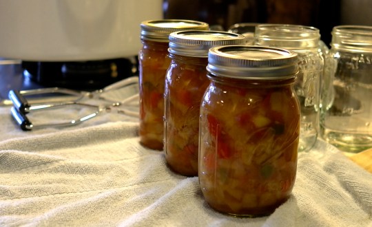 Cue the old school Zelda theme song, because I’m on a quest: make a canning salsa that is spicy enough for my husband to enjoy the heat all winter long. This recipe came from the Food Channel. The result is a salsa with a decent amount of spice (but my quest is not over yet). I know that I can just add some habaneros for some serious heat, and that would be great for a salsa to stick in the fridge and eat within the week. However, whenever I want to put tomatoes in the cabinet for a year, I am wary of playing with the ingredients. That’s because I know that it has to have the correct level of acidity, etc. in order to avoid spoiling the food. Does anyone out there know of a tested recipe for a spicy canning tomato salsa? I think there are a still a few weeks left of tomato season, and I would like to give it one more try.