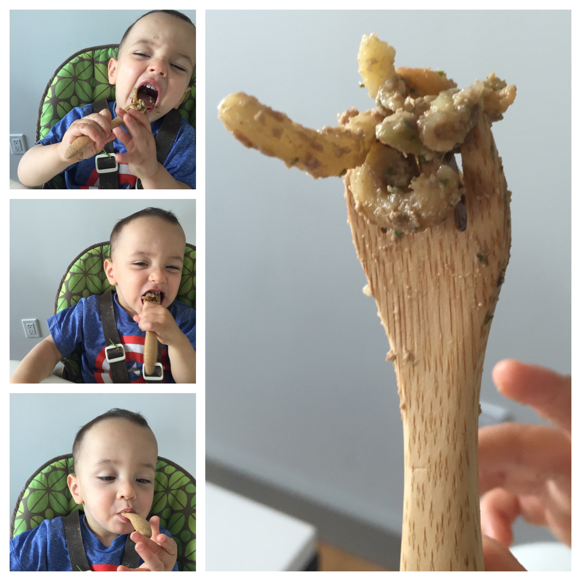 For the record: My child, who refuses chicken nuggets and even mac-n-cheese from a box, could not get enough of this pasta today. Maybe it was the fact that I let him hold a fork, but I like to think that he just sometimes chooses to go vegan and gluten-free.