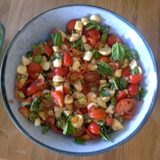 The cherry tomatoes and basil came from my garden in the sky. I was pretty excited that I grew enough tomatoes to make a salad that fed 5 people!