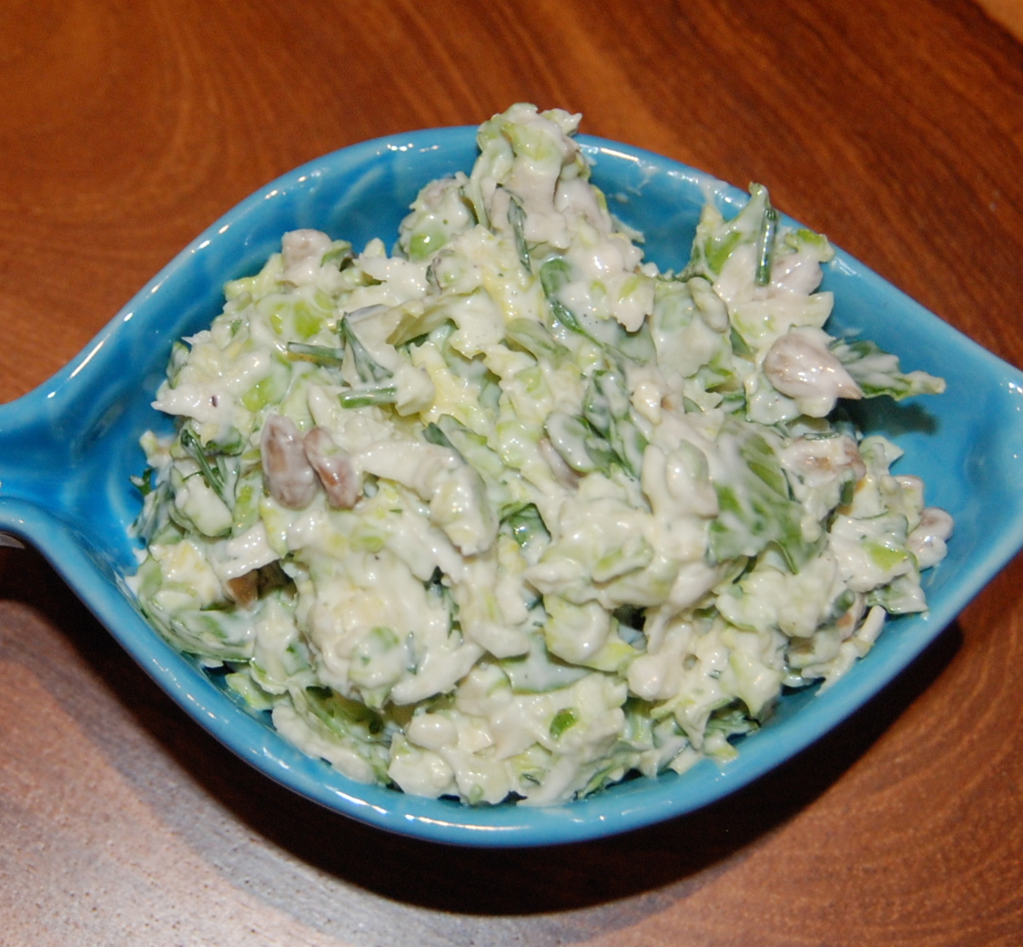 I can’t get enough Brussels sprouts. Although my go-to recipe is Brooklyn Brussels Sprouts (which I posted almost exactly one year ago), I was looking for a variation. I like this one because it requires no cooking. This recipe came from Food and Wine magazine. If you use the shredding attachment on your food processor, it can be made very quickly. What’s also nice is that you can make this a day in advance. The recipe in Food and Wine called for salted roasted sunflower seeds. I only had raw unsalted seeds, so I just toasted them on a skillet for a few minutes and added a bit of salt before folding the seeds into the slaw.