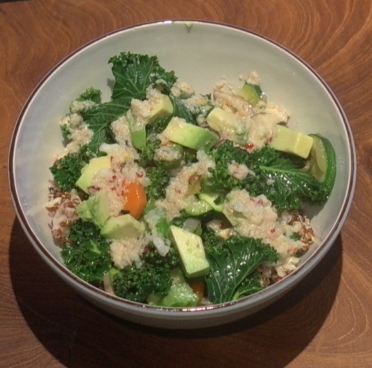 - Transfer the brown rice and quinoa to bowls. Top with the cooked vegetables, diced avocado and bean sprouts (if using). Serve, passing the tahini sauce at the table.